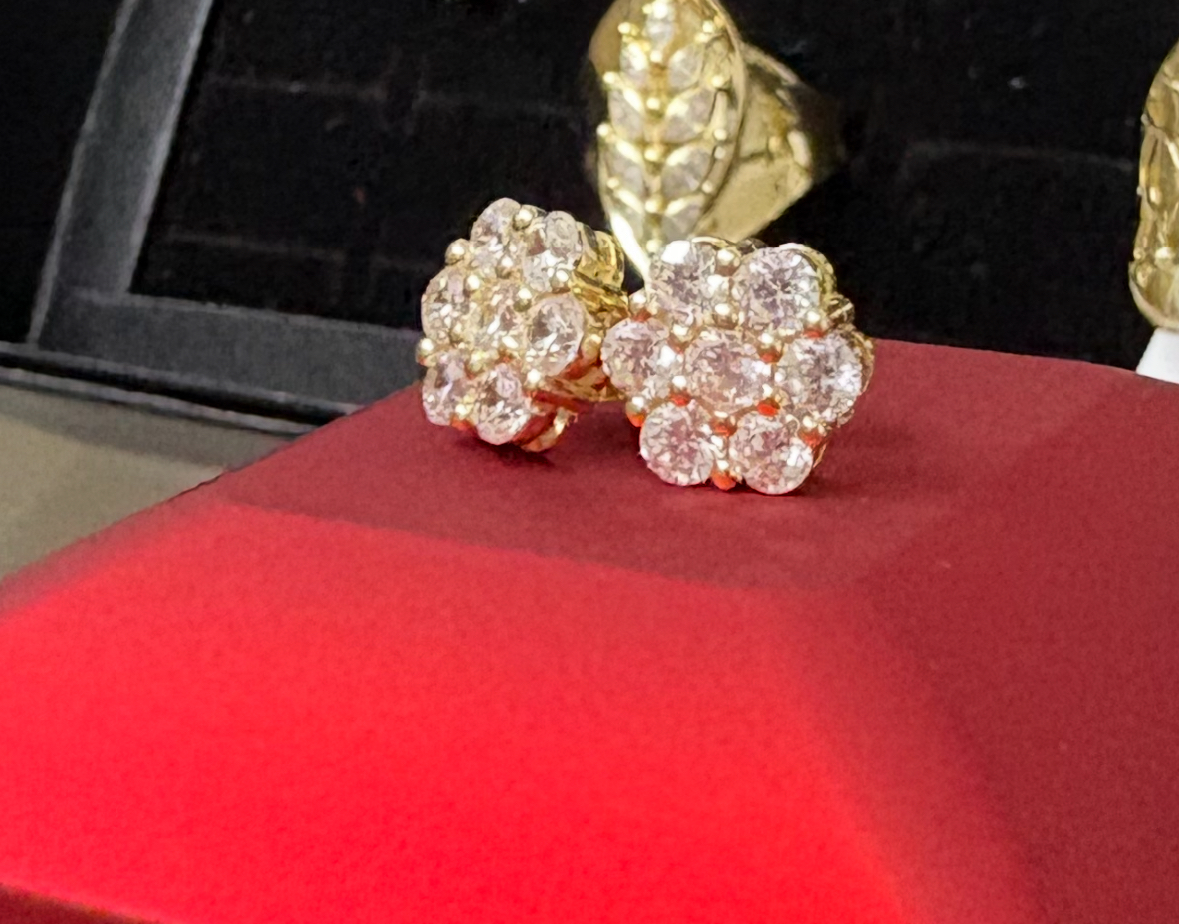 Gold Flower Cluster Diamonds Earrings